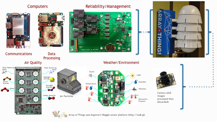 | Air Particles | Air Quality/Health (PM 2.5 to ~40) | Alphasense OPC-N2 (included in ~20% of 2018 nodes); Plantower PMS7003 (all 2019 nodes) | 1 |