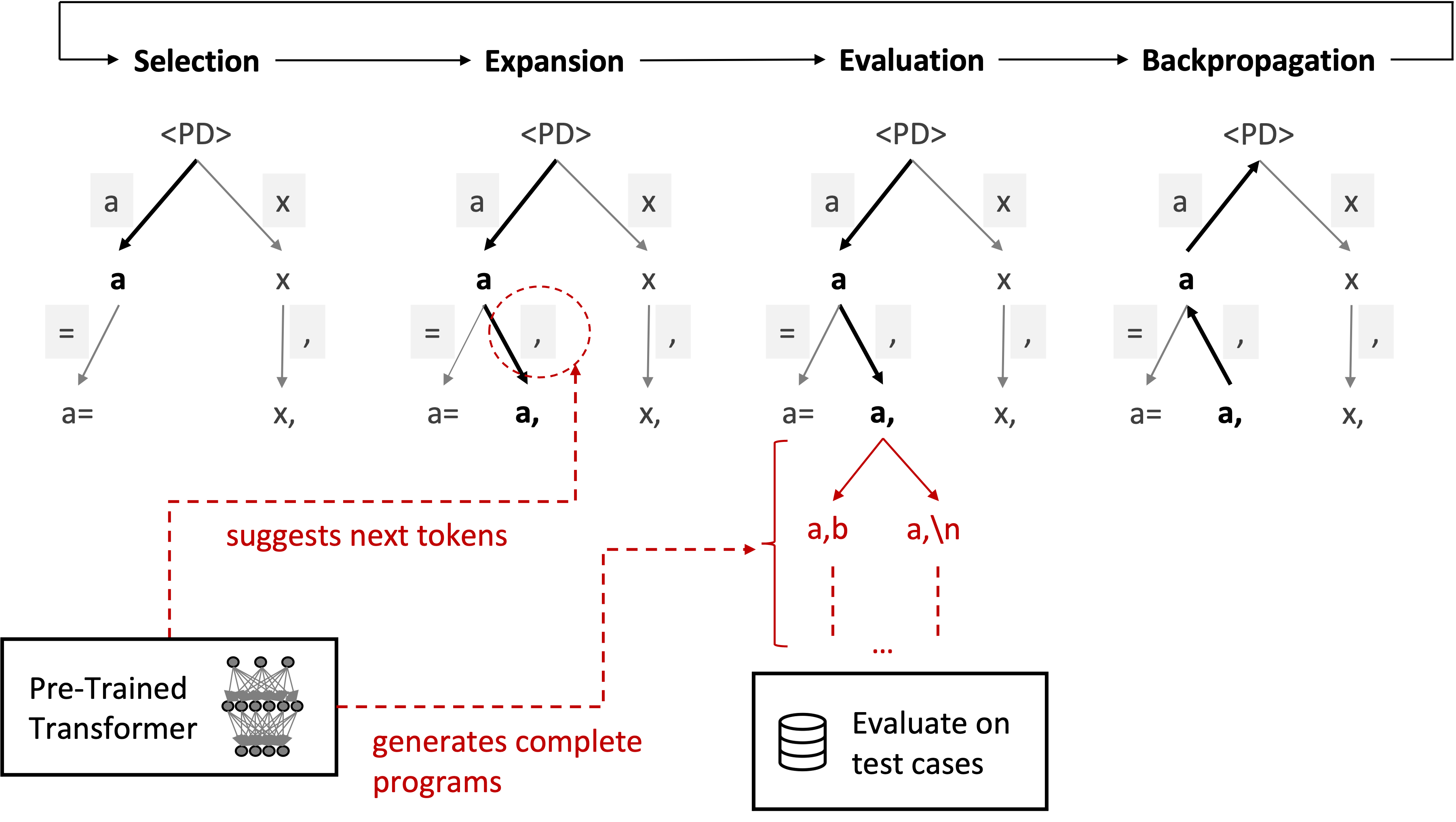 Illustration of the Planning-Guided Transformer Decoding (PG-TD) algorithm for code generation. <PD> stands for problem description.