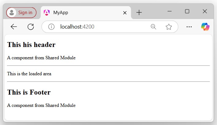 <h2>This his Footer</h2> <p>A component from Shared Module</p>