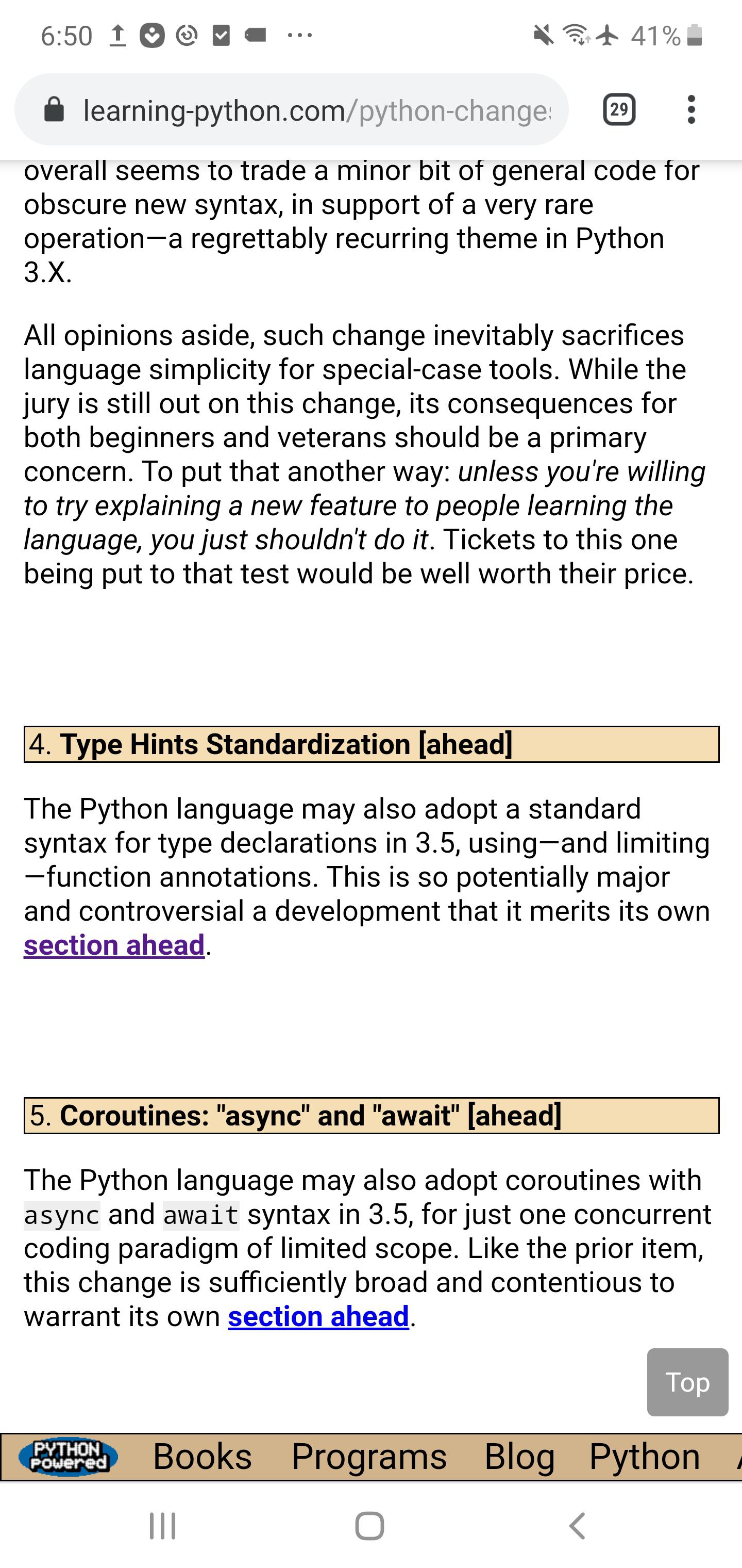Subtle thing: the preceding note's new Top buttons may slightly overlap page-bottom toolbars like this when viewed with most desktop browsers in very small and narrow PC windows, because these browsers reserve extra space for a scrollbar. This can happen on Windows, Linux, and macOS, though not on macOS when using a touchpad and the General preferences' automatic scrollbar-hiding default (which acts much like a mobile device).