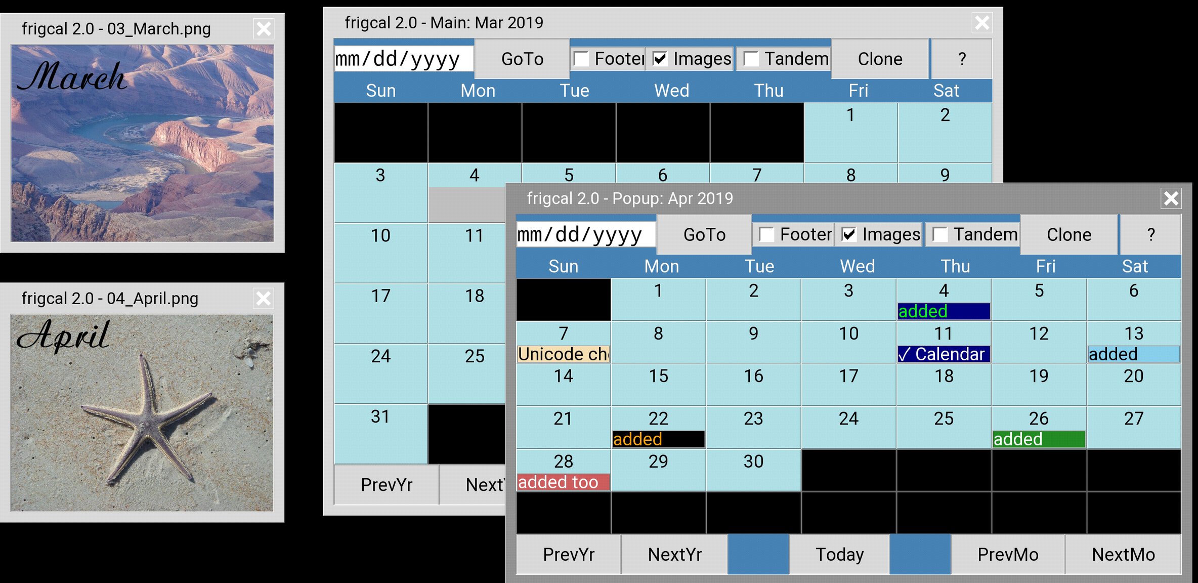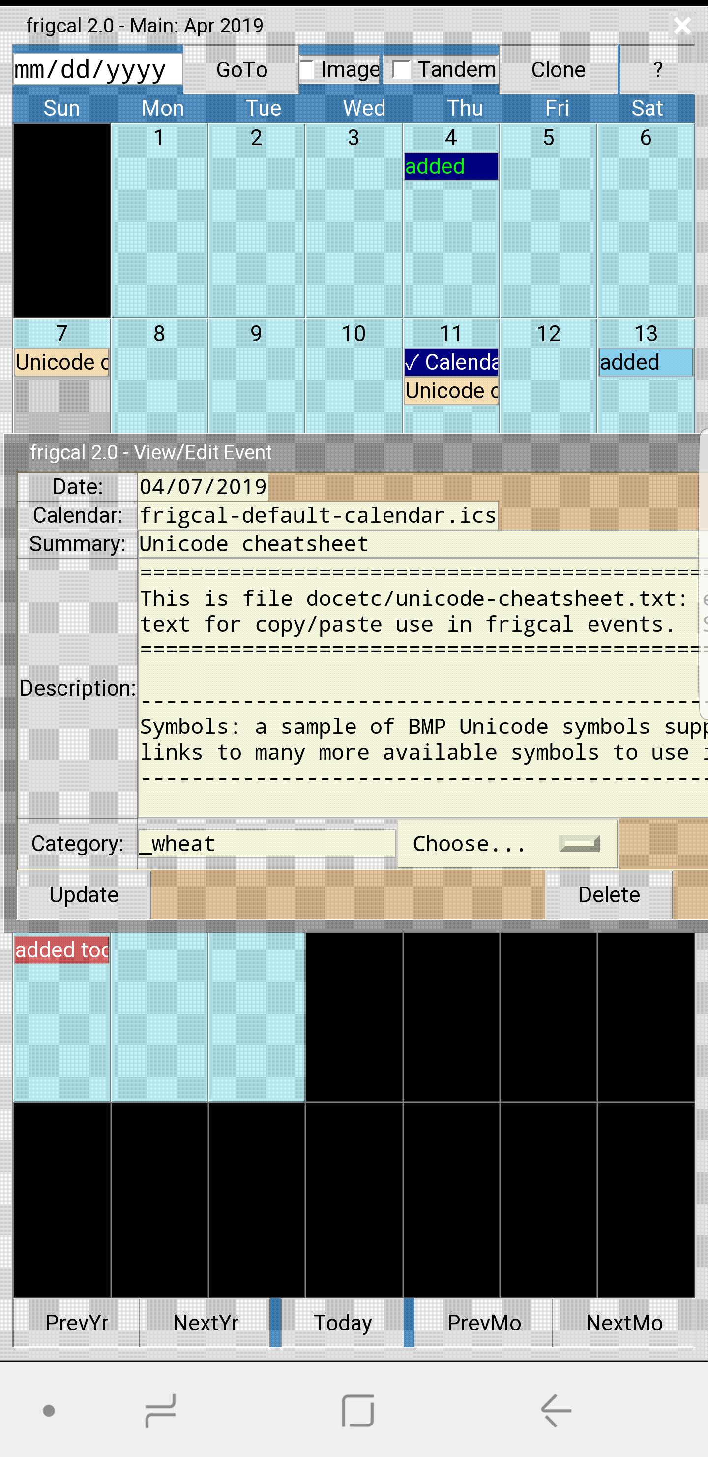 Usage update: in October 2024, the Pydroid 3 app's version 7.4 has finally gained Android's All Files Access permission. By granting this on first file access in the app, you may again download, unzip, and run the programs here anywhere in shared (a.k.a. internal) storage on your device. Likewise, your content files—including calendars in Frigcal and text and code in PyEdit—may be kept anywhere in shared storage and freely accessed there by other apps. This reverses a 2023 change in the app's version 6 that radically reduced program functionality, though the app still does not provide access to removable drives that are accessible with the new permission, oddly. For more info, see this page.