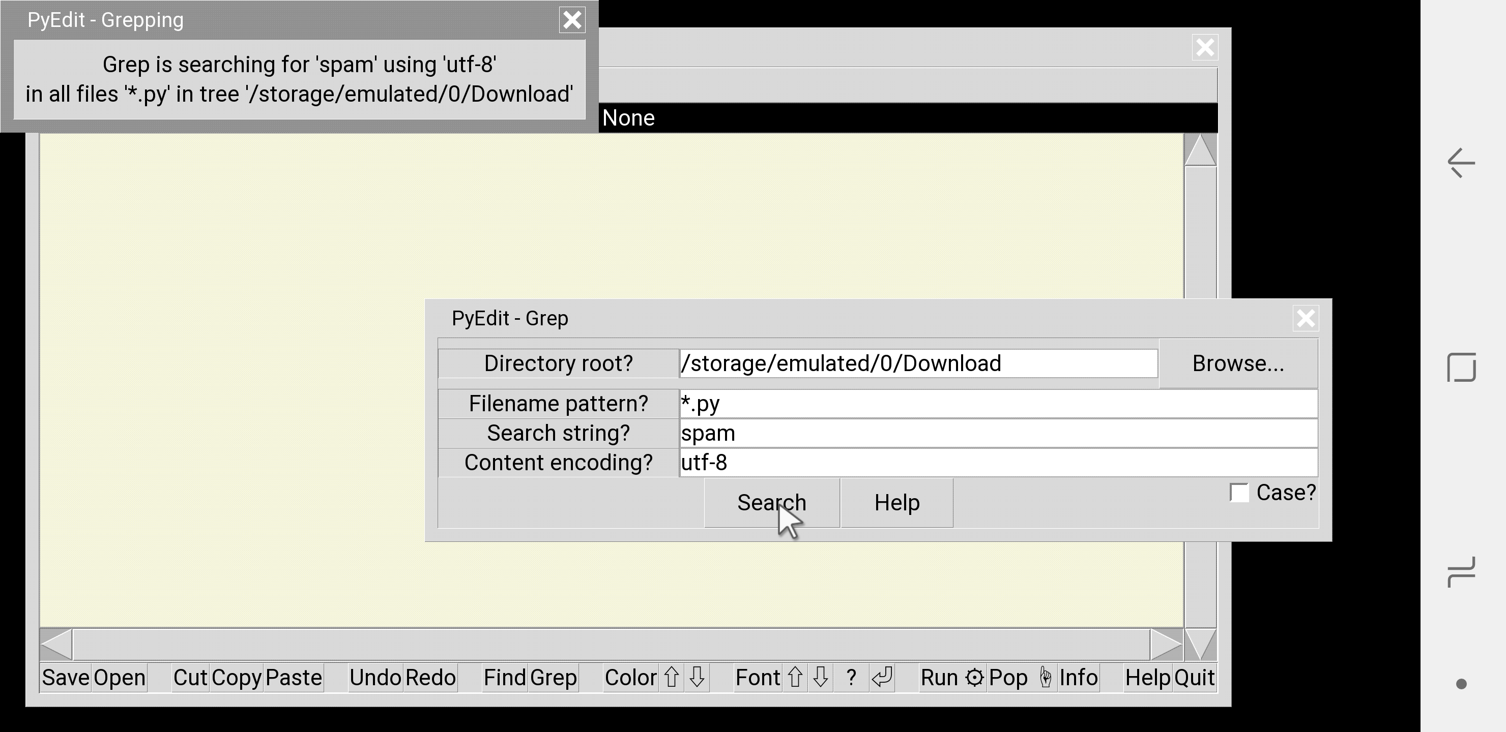 nested PyEdit code per above, and looks like the following when opening