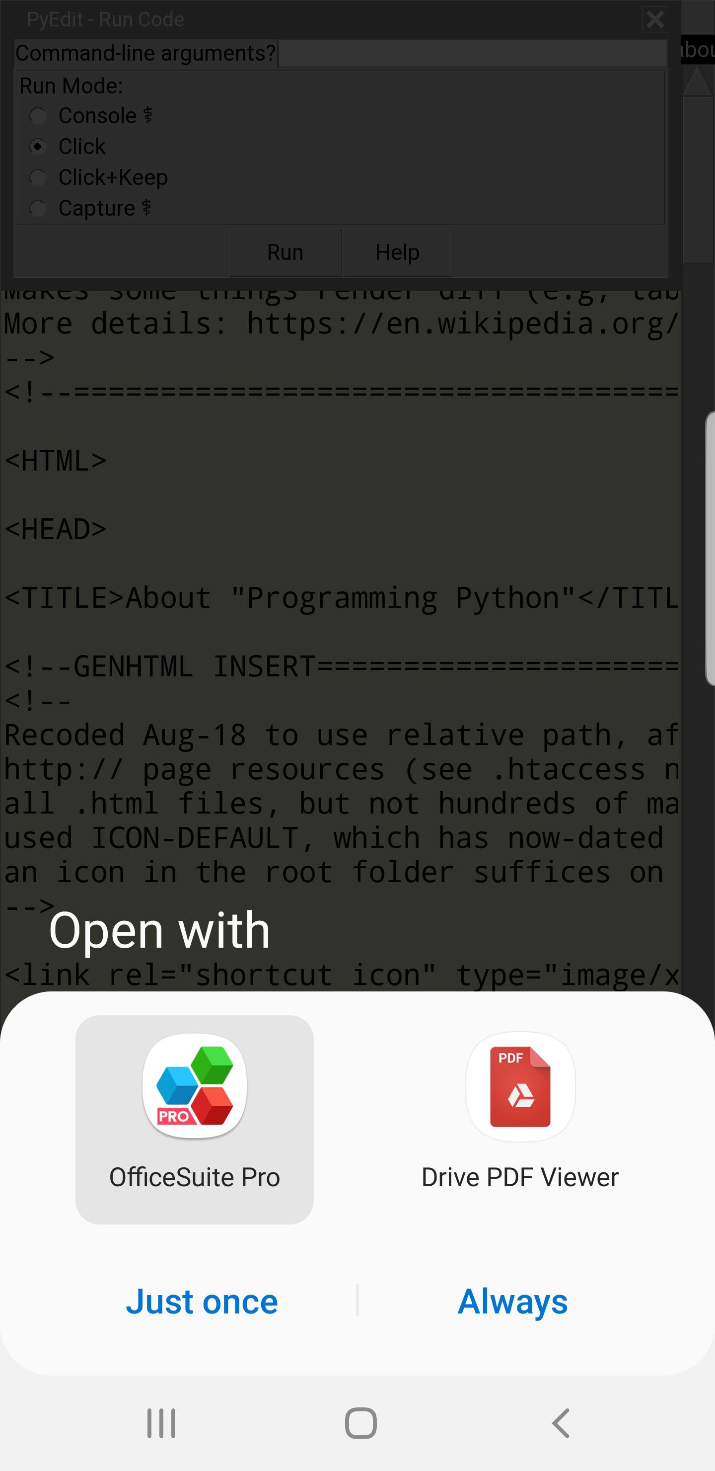 but be sure to set the default app or command to Pydroid 3.