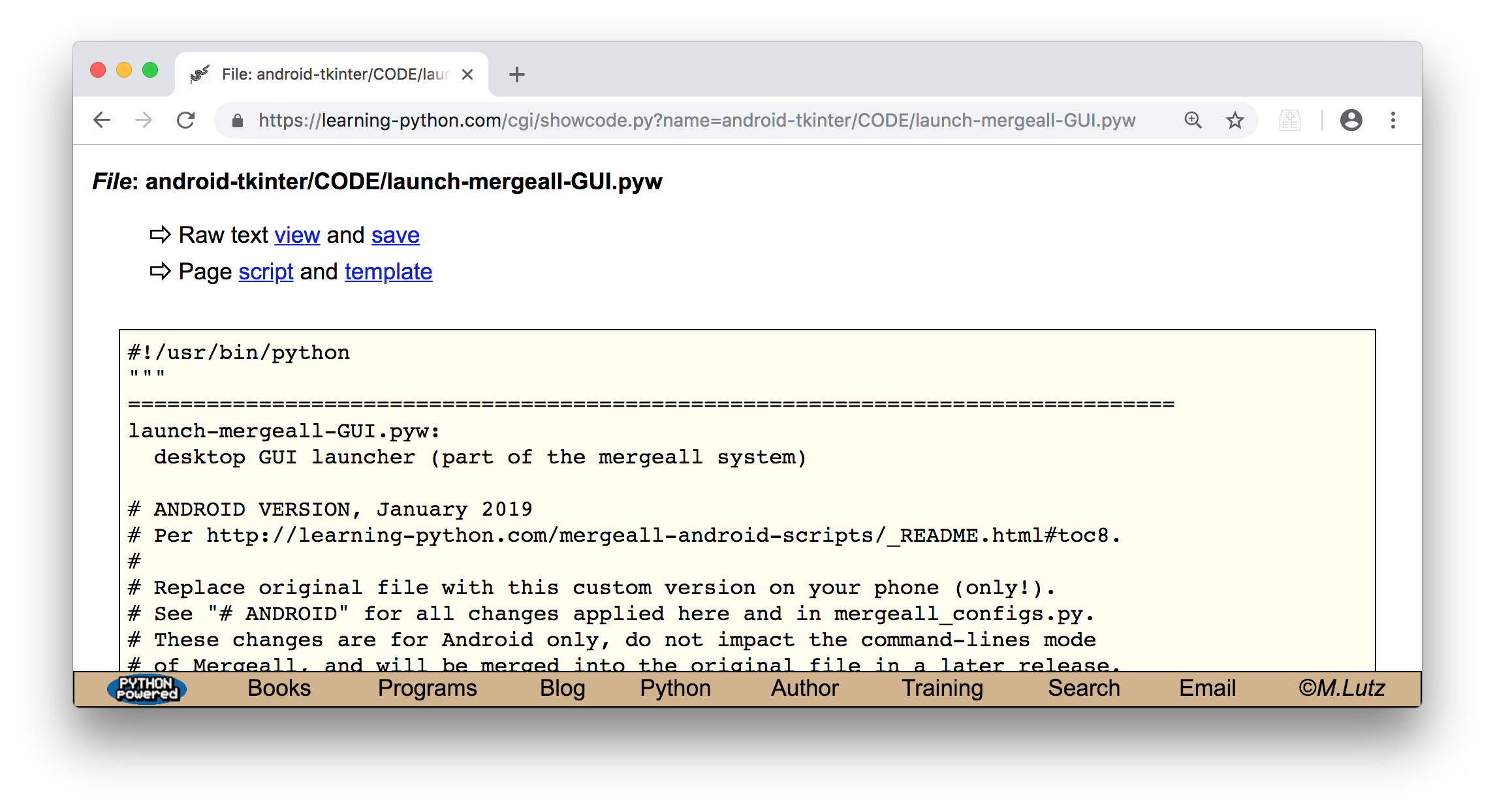 And move them to the top level of your unzipped Mergeall source-code package, replacing their original versions. Download by clicking "save" in the "Raw text" line of these links' pages, and search for "# ANDROID" to see code changes made if desired. Note: some browsers may append a bogus ".txt" to the end of a saved ".pyw" file's name; delete the ".txt" manually by renaming.