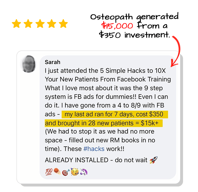 The 100 Patient Bundle Workshop is a detailed, comprehensive training on attracting and converting your next 100 patients. We could easily sell it as a stand-alone course for a minimum of $997. By claiming your Guest Pass, you’ll get access to the full replay video of the workshop!