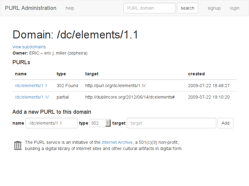 The PURL system is a service of the Internet Archive. To make changes to a PURL users need to have a user account with the Internet Archive.