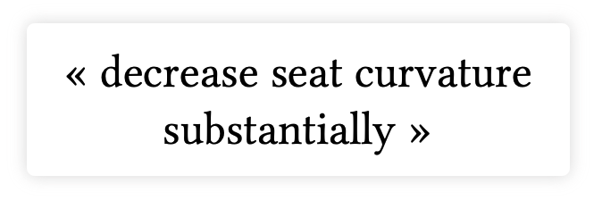 We showcase generated synthetic chains using our method. For each chain edge, we show the corresponding language instruction describing the parameter changes necessary to transition from one shape to the next. Generated shape chains are realistic and diverse, and focus on fine-grained shape details.