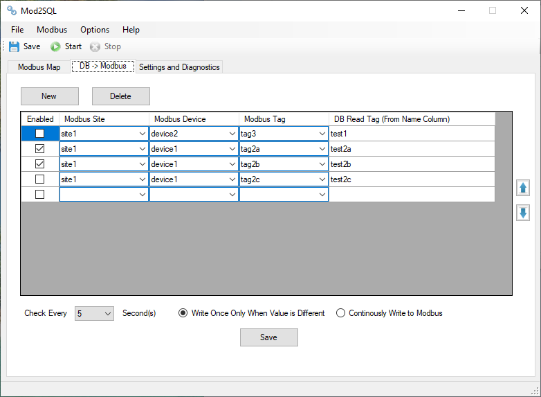 Mod2SQL is a light weight 64-bit Windows application that allows you to pull data from multiple Modbus enabled devices into SQL Server, MySQL, or Oracle using native database drivers. Mod2SQL also allows ODBC connection to any database resided in your cloud server, such as Azure SQL and Amazon Relational Database.