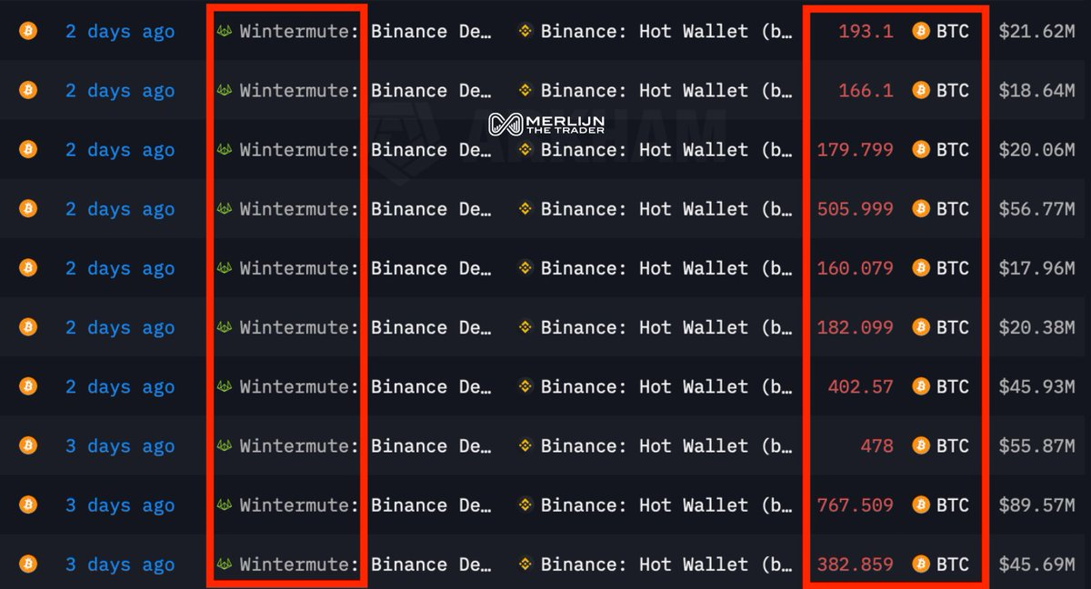 Özellikle, popüler kripto analisti Merlijn The Trader’a göre, kripto piyasa yapıcısı Wintermute çöküşten sadece birkaç saat önce yaklaşık 700 milyon dolar değerinde Bitcoin’i (BTC) Binance’e transfer etti.