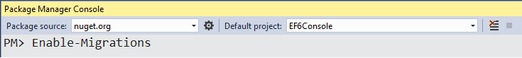 To use code-based migrations, first execute the enable-migrations command in the Package Manager Console.