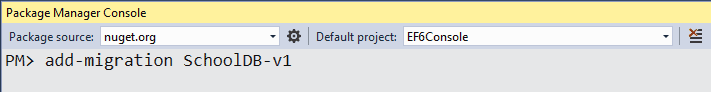 Now, you have to create a migration class using the Add-Migration command with the name of your migration class, as shown below.